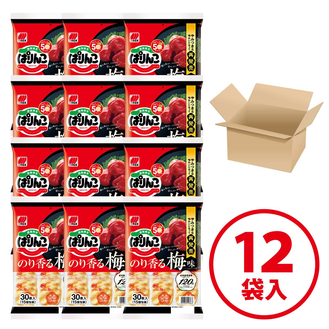 【公式通販!まとめ買いで10%オフ!】ぱりんこ のり香る梅味(30枚)×12袋