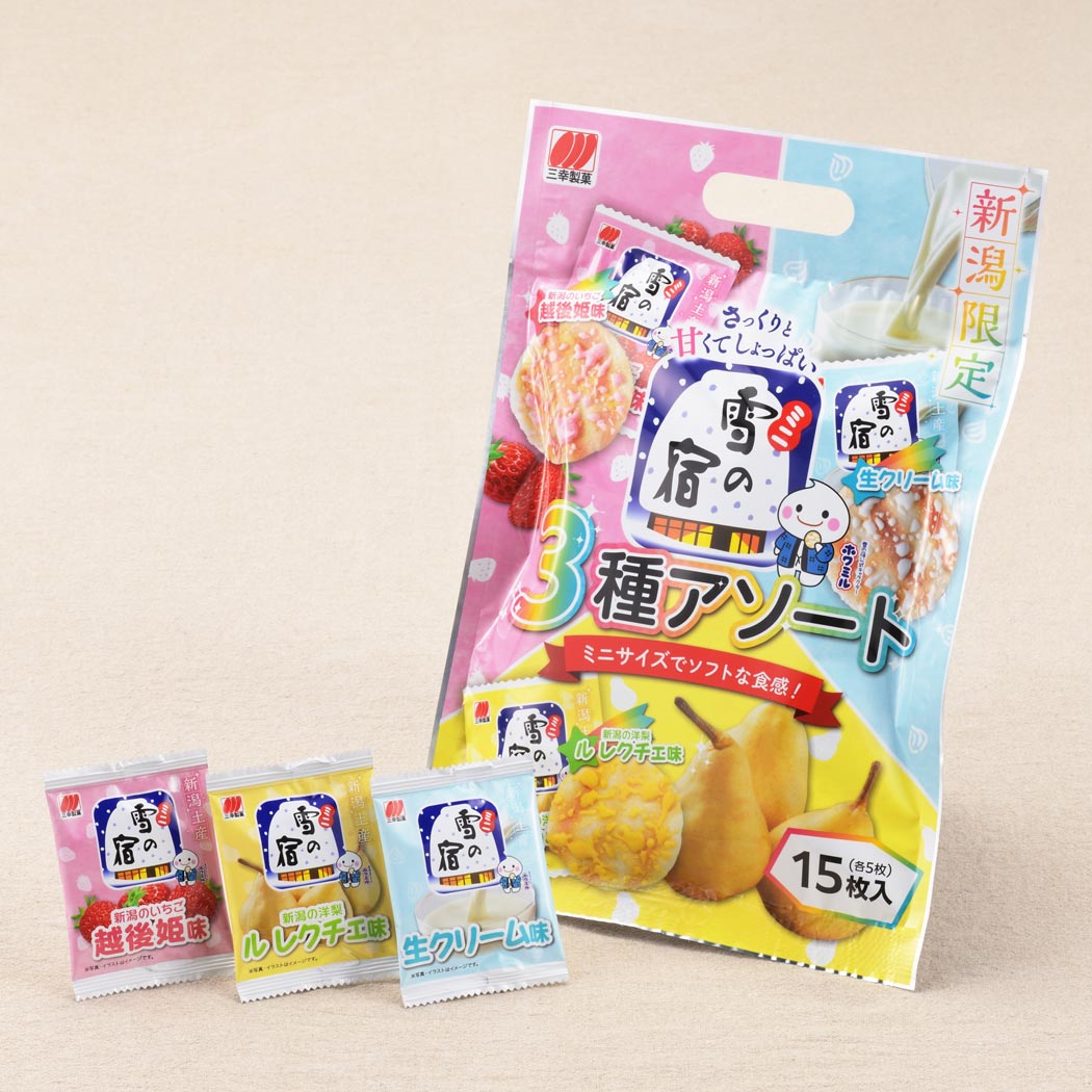 【新潟限定の味をご自宅で】ミニ雪の宿 3種アソート 15袋入(1枚包装×各5袋)新潟限定